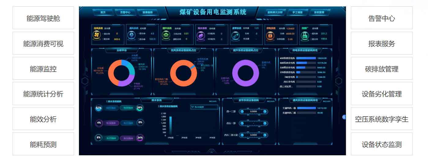根據(jù)《煤礦及重點非煤礦山重大災(zāi)害風(fēng)險防控建設(shè)工作總體方案》要求,自主研發(fā)的礦山(煤礦)重要設(shè)備用電監(jiān)測系統(tǒng),幫助煤礦行業(yè)能耗體加強能源消耗日常調(diào)度、提升能源管理精細化水平、開展能源審計、審查以及節(jié)能改造投資等提供決策支撐服務(wù)。