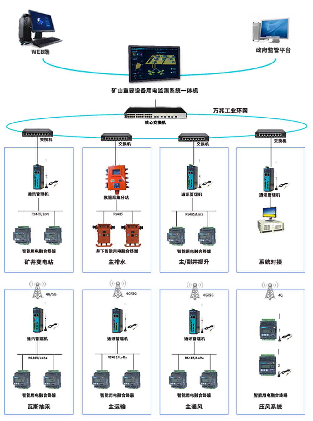 礦山(煤礦)重要設(shè)備用電監(jiān)測系統(tǒng)架構(gòu)