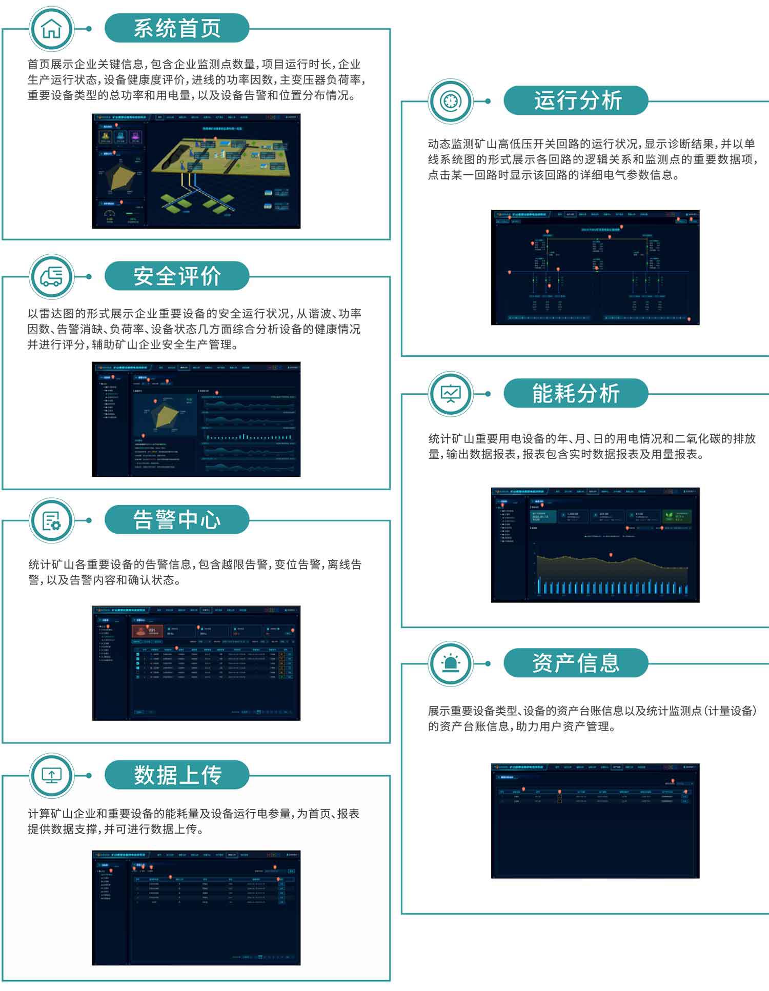 通過建立重點煤礦建設(shè)重要設(shè)備用電監(jiān)測子系統(tǒng),提高煤礦的智能分析水平,督促煤礦企業(yè)提前防范化解重大安全風(fēng)險,并進一步提升應(yīng)急救援精準度和時效性。
