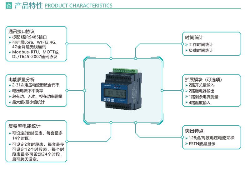 6.標(biāo)配1路RS485通訊接口,Modbus-RTU、DL/T645-2007通信協(xié)議
