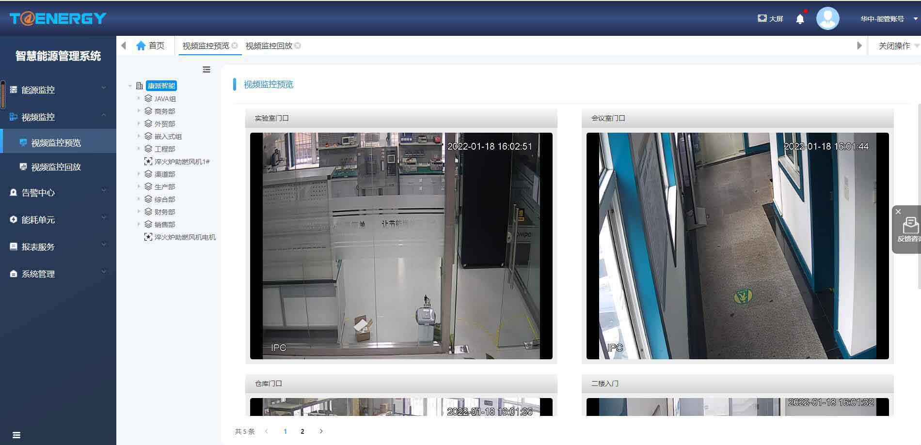 對組織機構下的攝像機進行實時預覽、視頻回放。多維度掌握設備運行情況,異常侵入可視化避免電氣火災和保障用戶人身安全。
