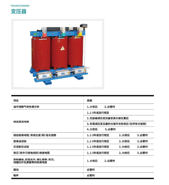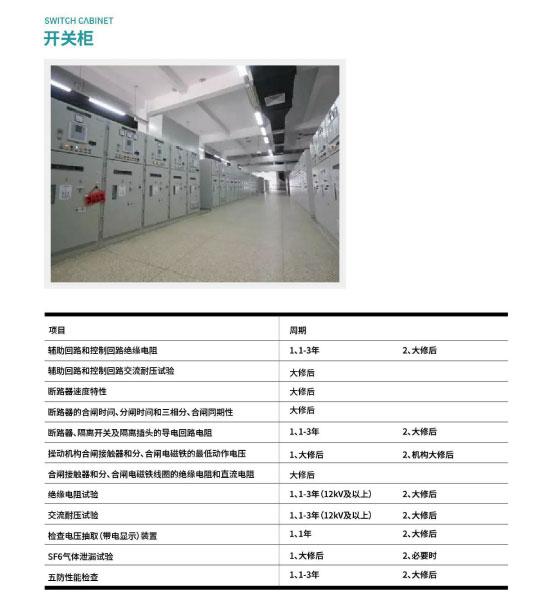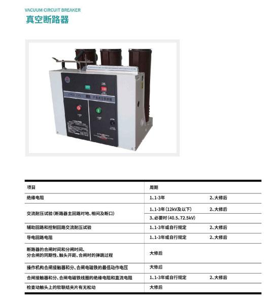 根據(jù)DL/T 596-2005《電力設(shè)備預防性試驗規(guī)程》要求,電氣設(shè)備需按照規(guī)范要求定期做預防性試驗及完成相應試驗項目,其中變壓器、電力電纜、真空斷路器和開關(guān)柜等主要的配電室內(nèi)電氣設(shè)備的常規(guī)試驗項及周期如下所示。