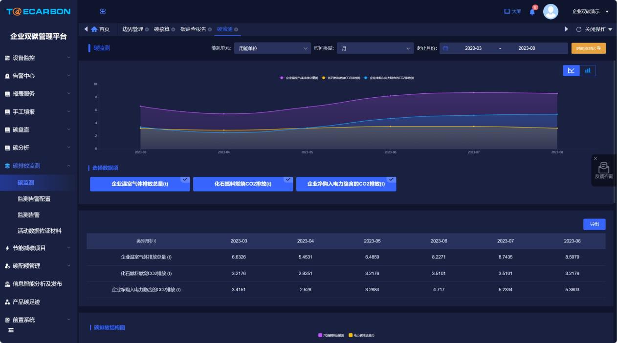 數(shù)字化能碳管理系統(tǒng)平臺是支撐工業(yè)企業(yè)和園區(qū)提升能耗雙控和碳排放雙控管理水平的信息系統(tǒng),是加強(qiáng)工業(yè)節(jié)能降碳管理,推進(jìn)數(shù)字技術(shù)賦能綠色低碳轉(zhuǎn)型的基礎(chǔ)工具。可支撐企業(yè)申報綠色工廠和零碳園區(qū),滿足《工業(yè)企業(yè)和園區(qū)數(shù)字化能碳管理中心建設(shè)指南》中十二項功能,即能耗查詢、能源消費(fèi)量和強(qiáng)度計算、能源消費(fèi)分析與用能策略推薦、能效對標(biāo)、能流分析、能效平衡與優(yōu)化、用能與碳排放預(yù)算管理、碳排放、碳足跡核算、供應(yīng)鏈碳管理、碳核查支撐、碳資產(chǎn)管理等功能。