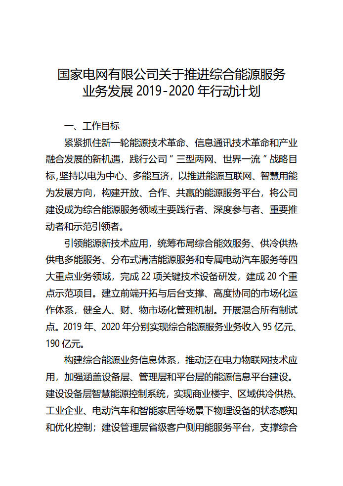推進(jìn)綜合能源服務(wù)業(yè)務(wù)發(fā)展2019-2020年行動(dòng)計(jì)劃