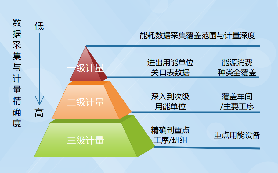 能耗在線監(jiān)測系統(tǒng),即生產過程中用能的實時監(jiān)測,按照能耗級別通常分為三個等級,
