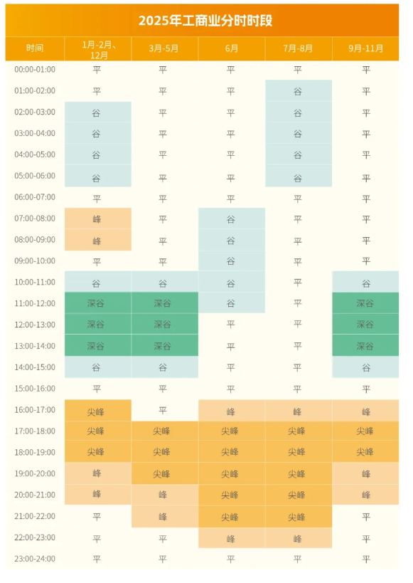 低谷時(shí)段為10:00至15:00,其中,深谷時(shí)段為11:00至14:00;高峰時(shí)段為16:00至21:00,其中,尖峰時(shí)段為17:00至19:00;其余時(shí)段為平時(shí)段。